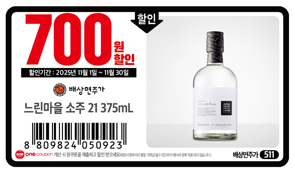 * 일부매장 또는 할인기간 변경으로 쿠폰이 정상적으로 처리되지 않을 수 있습니다. (고객센터 02-332-8777)